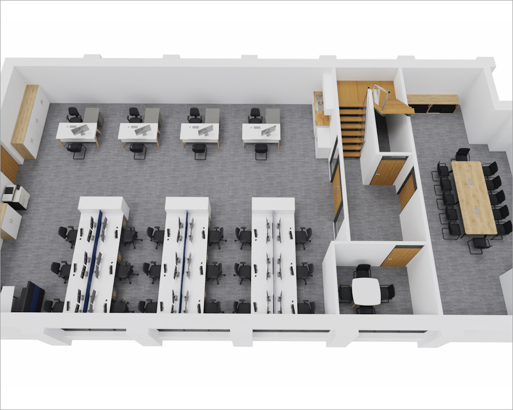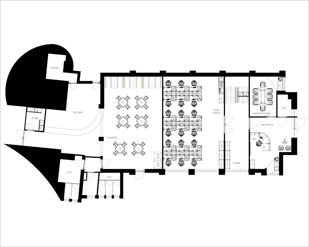 The project brief was to accommodate 40 team members over two floors, create a welcoming reception area, provide furniture for a working 24 hour canteen and a number of meeting rooms.