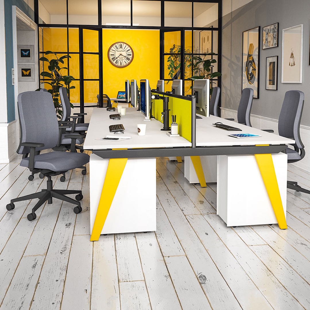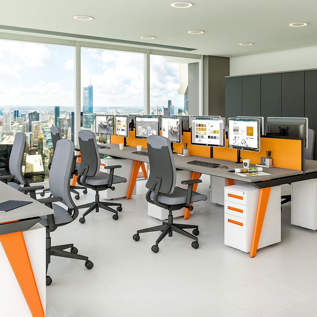 Take your workspace to the next level with the Evolution Bench, the ultimate in modern bench desking. Designed to combine functionality, flexibility and style, Evolution Bench delivers everything you need for a contemporary office environment. Choose from fixed or sliding desktops and enjoy a complete cable management system that keeps your workspace tidy and efficient. With five desktop shapes available, you can tailor your layout to suit any space or working style. The signature Oak or painted RAL finish legs—available in a stunning palette of 21 colours—add a premium design touch and let you coordinate perfectly with your office aesthetic. Complete the look with matching Executive Desks and Boardroom Tables, creating a cohesive and inspiring workspace from every angle. Upgrade your workspace with Evolution – where style meets functionality.