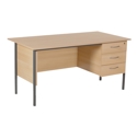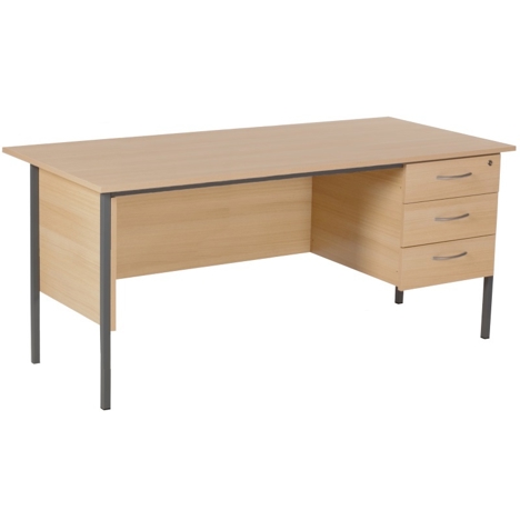 Our Single Pedestal Three Drawer Desks are part of our Universal Range of office furniture, designed with practicality in mind to enhance your workspace and boost efficiency. With its standout features including a 18mm thick top, secure lockable drawers, and a robust metal frame for added durability and stability. This single pedestal three drawer desk is an ideal choice for those seeking a functional workspace that balances productivity with an attractive design.
